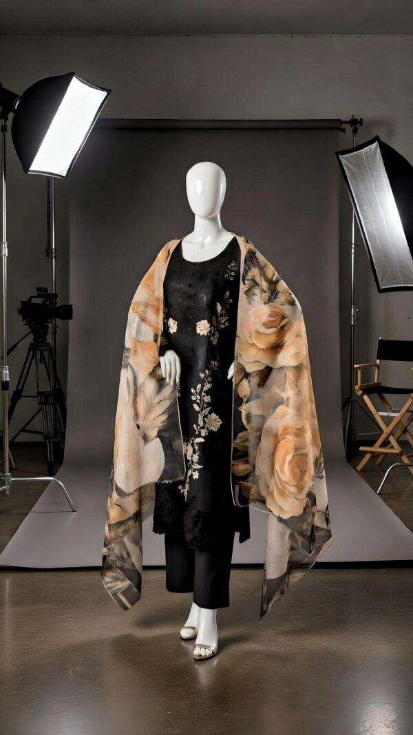 Desighn: Intricate embroidery, textured fabric, floral printed dupatta